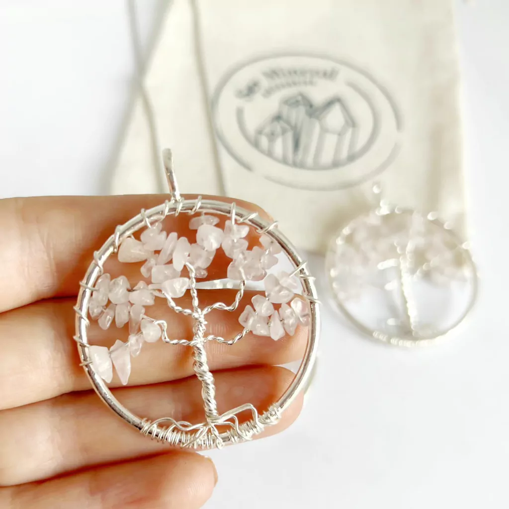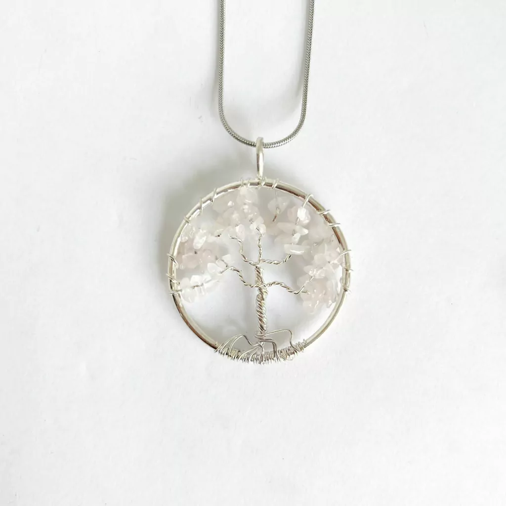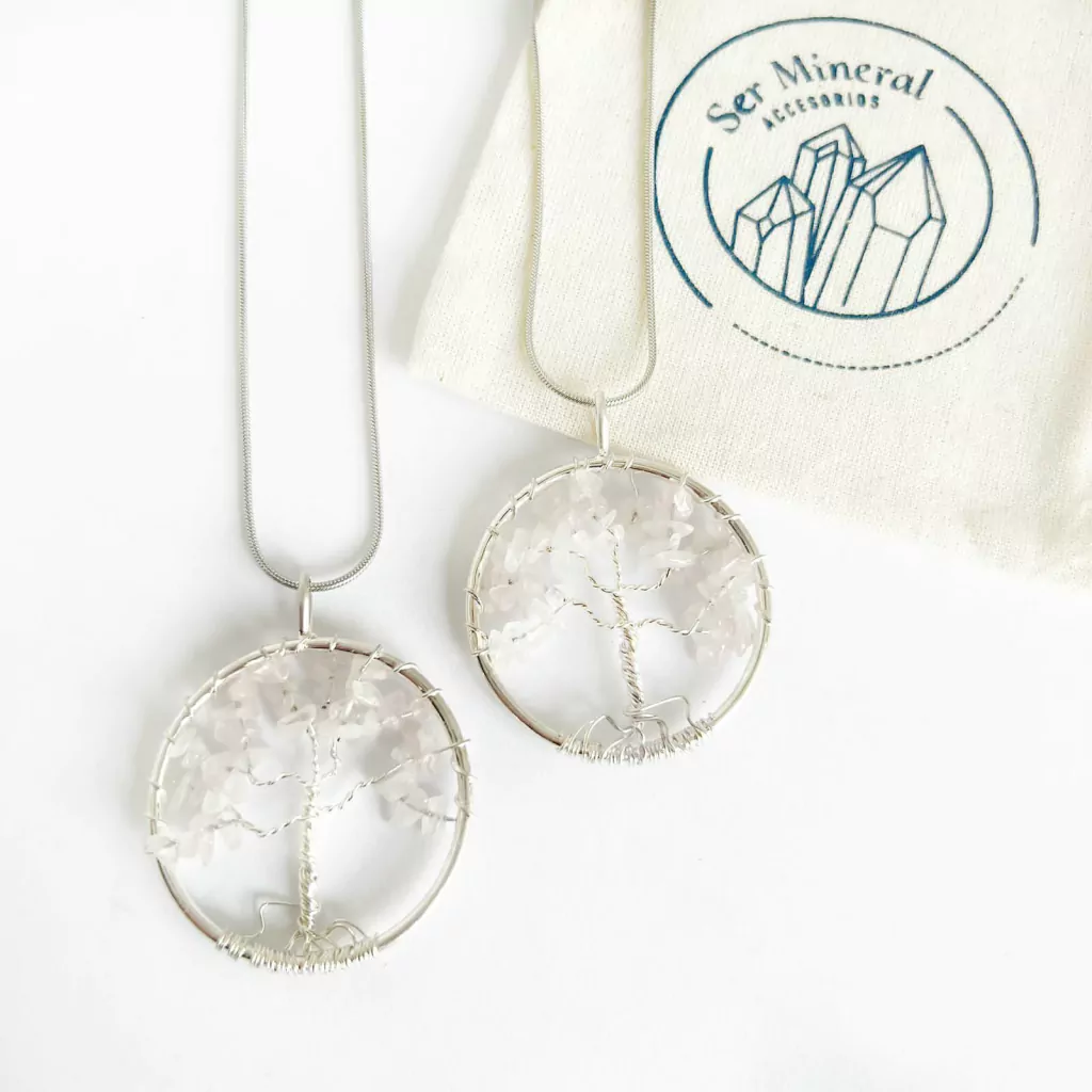 Dije arbol de escallas. Priedras disponibles: cuarzo rosa.