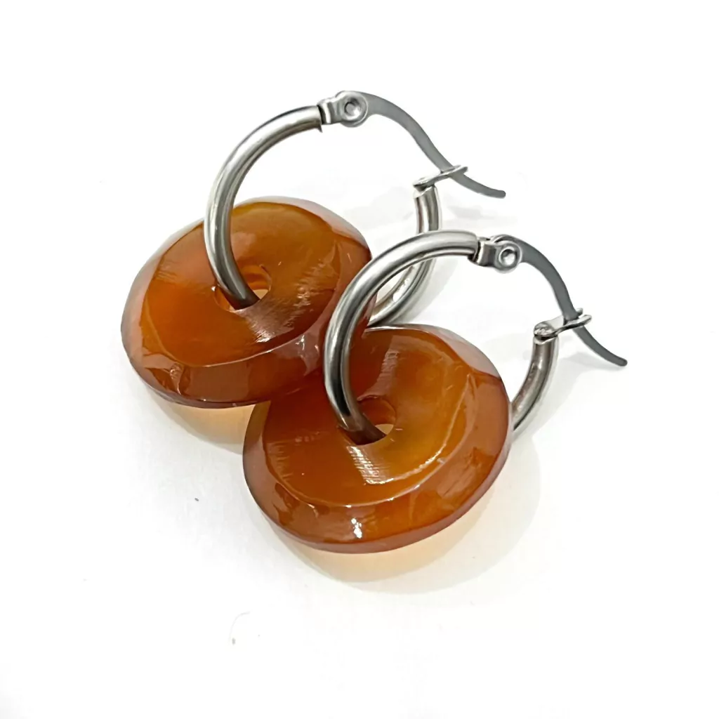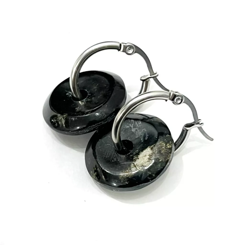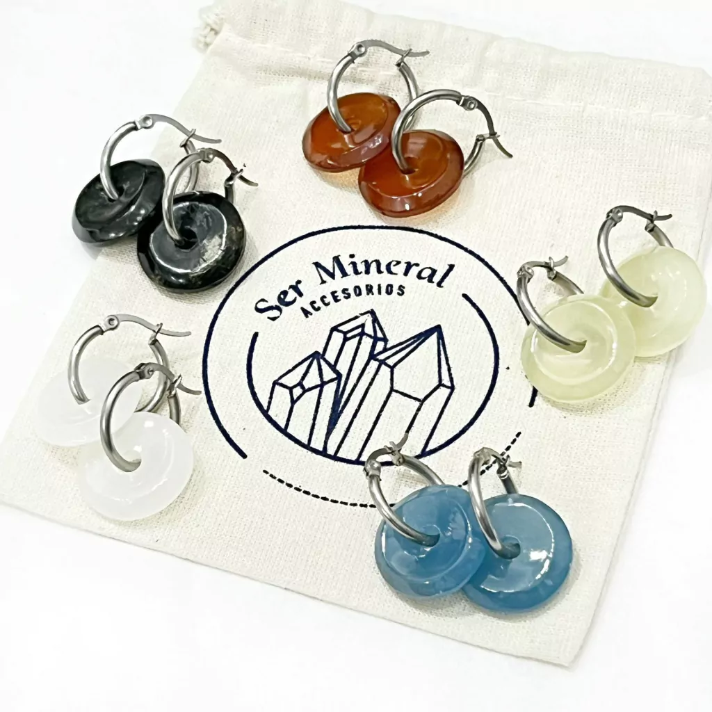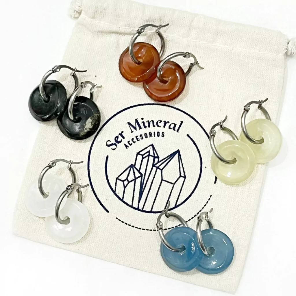 Aritos de acero quirúrgico,  piedra ónix varios colores