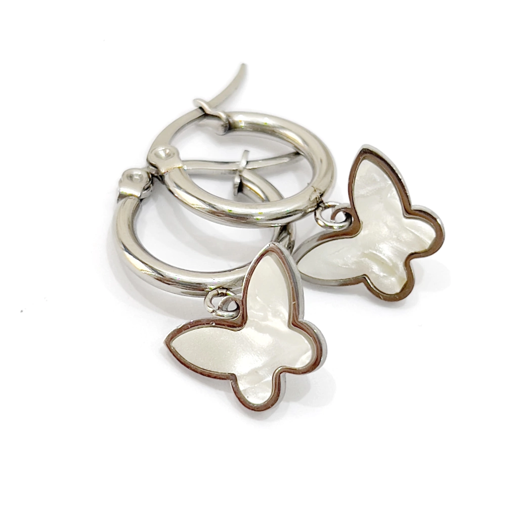 Aritos de acero quirúrgico y piedra con forma de mariposa, de nacar