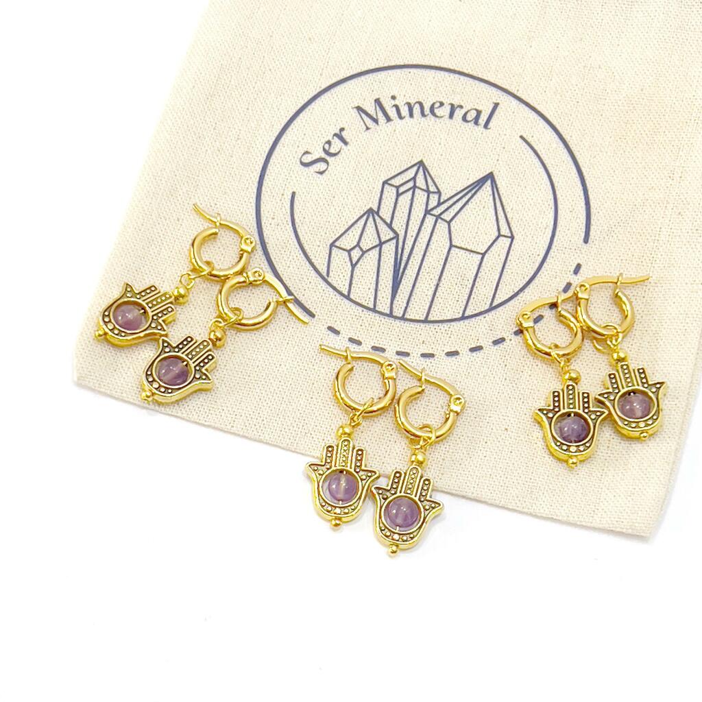 Aritos de manito y esfera de amatista de quirurgico dorado