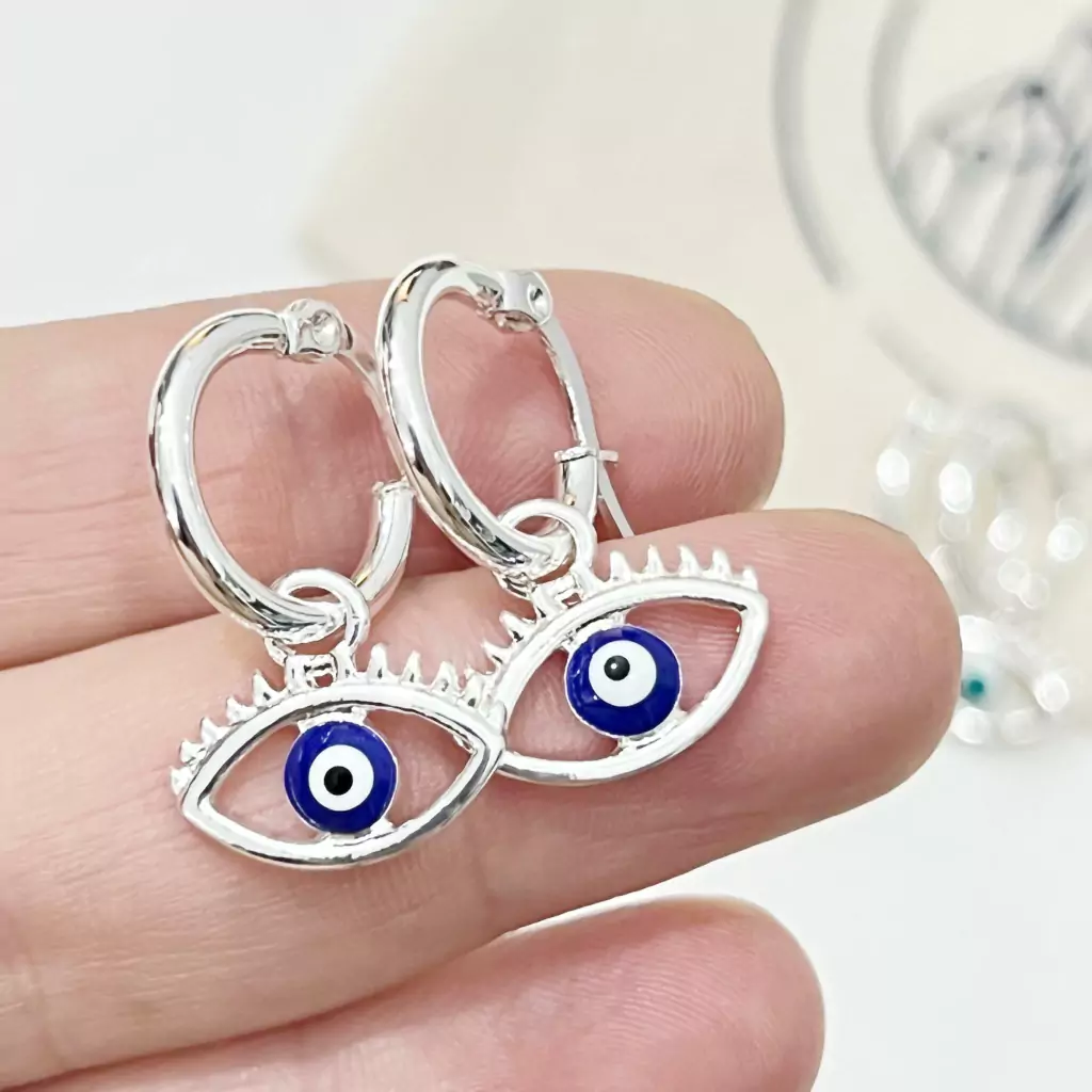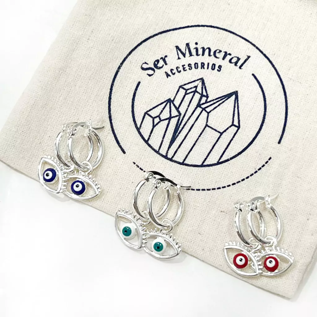 Aritos de acero quirúrgico con baño de Plata y ojitos de colores