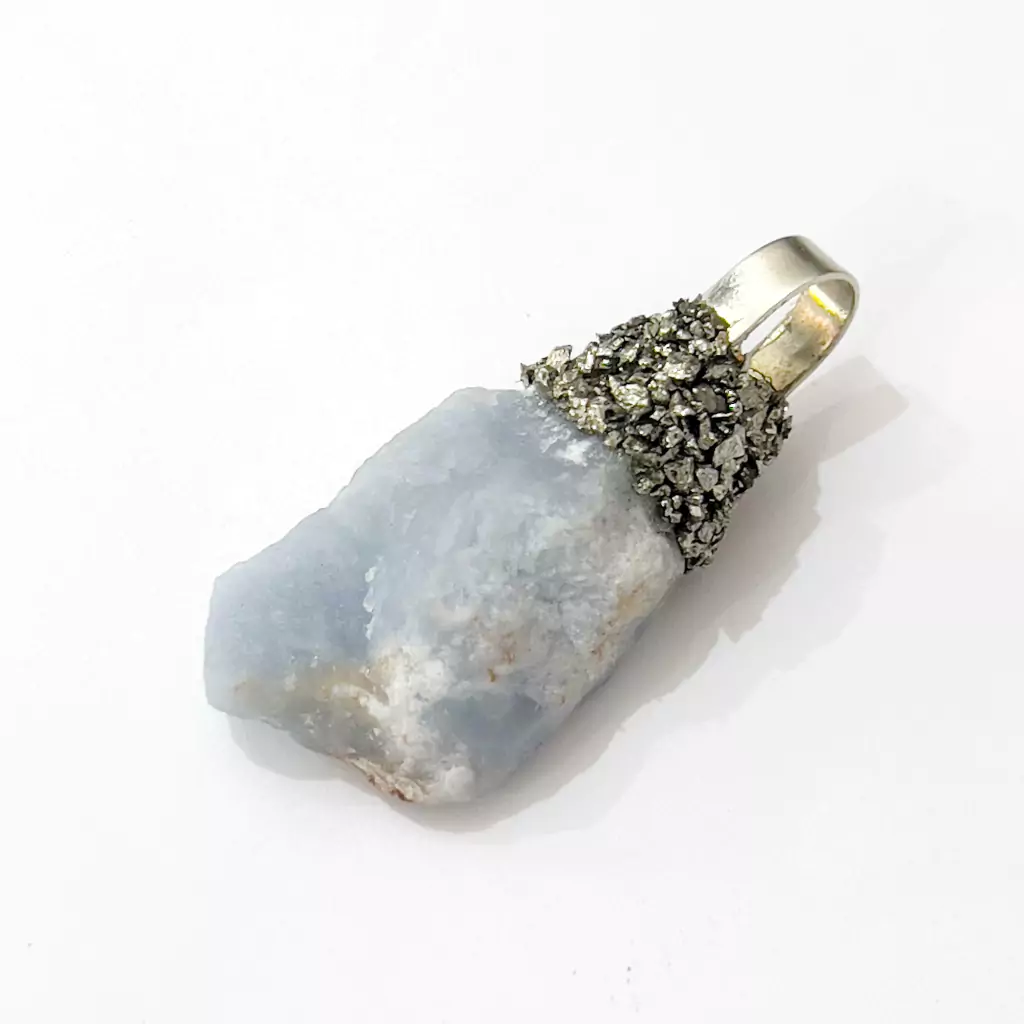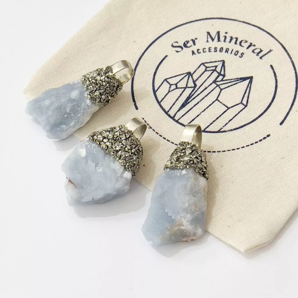 Dije de ANGELITA  con corona de pirita y drop de alpaca