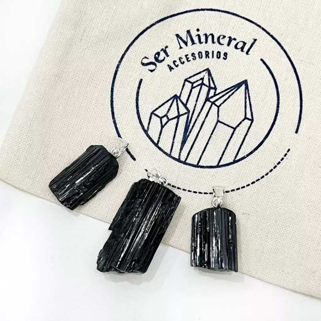 Turmalina negra con drop mediano (pasante de cadena bañado en Plata).